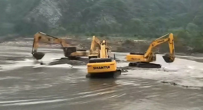 在洪水肆虐的區(qū)域,山推和雷沃重工挖掘機(jī)成為了搶險(xiǎn)救災(zāi)的重要力量。它們憑借強(qiáng)大的動(dòng)力和卓越的性能,在泥濘不堪、道路受阻的惡劣環(huán)境中高效作業(yè)。疏通河道,清除淤泥,保障水流順暢,加固堤壩、搬運(yùn)石塊,為筑牢防洪堤壩貢獻(xiàn)力量。